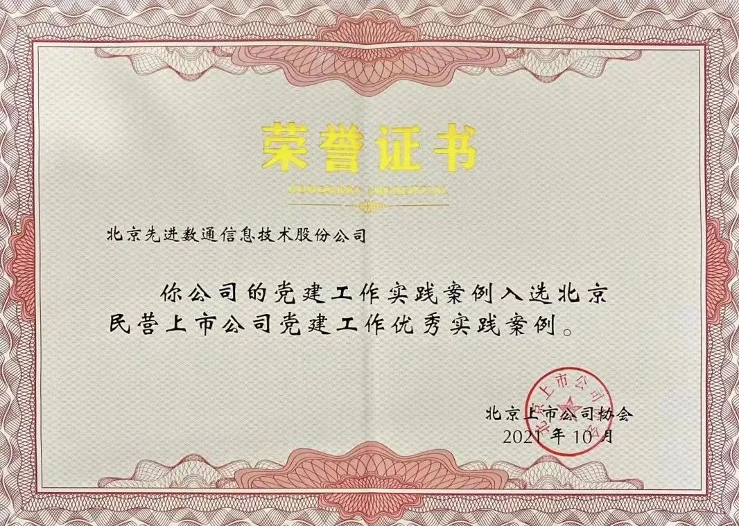 近期,北京上市公司协会授予北京凯发K8信息技术股份公司荣誉证书,凯发K8党建工作实践入选北京民营上市公司党建工作优秀实践案例,相关党建活动已收录在《北京民营上市公司党建工作优秀实践案例汇编》。